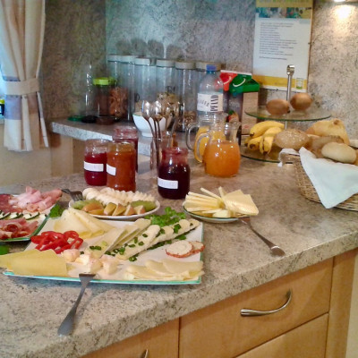Seit 2004 wird den Gästen ein köstliches, zertifiziertes Biofrühstück mit möglichst vielen Bio-Produkten vom Hof und aus der Region angeboten. Die Milch kommt natürlich von den eigenen Kühen und lädt zu einem frischen Glas am Morgen ein. Zum Garnieren für die Bio-Wurst- und Käseplatten wird Bio-Obst und Bio-Gemüse aus dem zertifizierten, eigenen Garten verwendet. Die Bio-Hartkäsesorten stammen von der Vöcklakäserei. Bio-Bäuerin Gerti ist überzeugt: „Ein guter Tag fängt mit einem ausgezeichneten Bio-Frühstück an.“