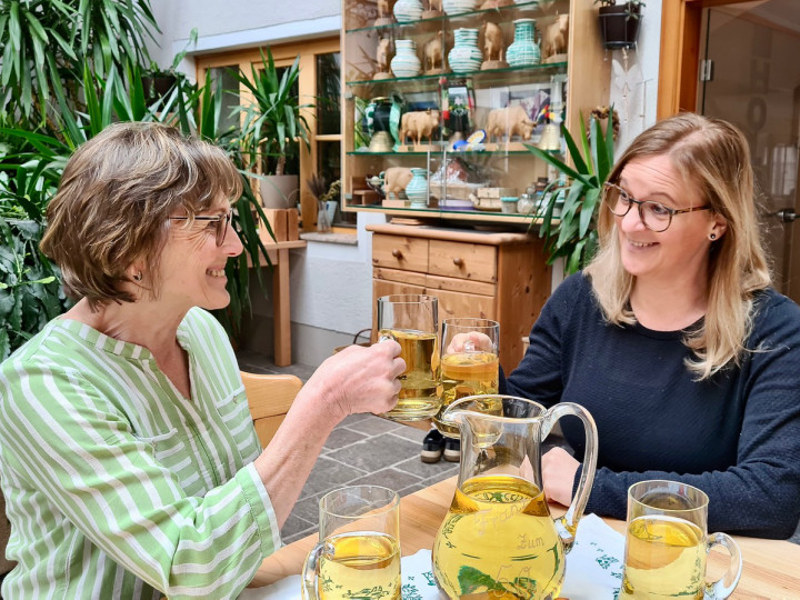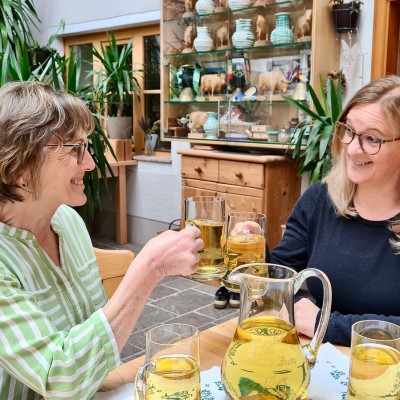 - Selbstgemachter Most, Schnäpse, Liköre, Marmeladen und Säfte werden in der Direktvermarktung verkauft