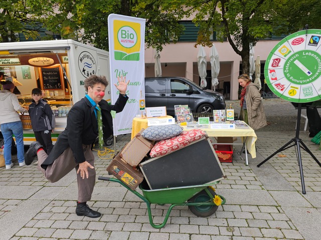 Für gute Stimmung sorge Zirkuspädagoge Heimo Thiel, der mit Witz, Geschick und pädagogischem Gespür Kinder und Erwachsene gleichermaßen begeisterte. Mit kleinen Kunststücken, Jonglage und Mitmachaktionen vermittelte er spielerisch, dass Bio Spaß macht – und alle etwas dazu beitragen können, unsere Umwelt zu schützen.