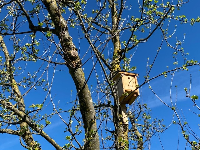 besonders durch ihr vielseitiges Engagement. Sowohl klimarelevante Maßnahmen wie Low Input, Kompostdüngung, Hackschnitzelwerk, 32 kw Photovoltaik Anlage als auch die Stärkung der Biodiversität mit Feuchtbiotop, Streuobstgarten, alten Obstsorten, unzähligen Insektenhotels, Nistkästen und Falkenstangen zeichnen den Betrieb aus.