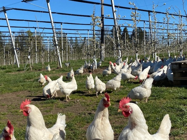 viele unterschiedliche Strukturen befinden sich rund um den Hof, auch beim Grünland wird auf späte Mahd geachtet um die Artenvielfalt zu fördern. Die Apfelkulturen werden mit Kompost, Mulch und Brennesselsud versorgt, das Tafelobst im Kühlhaus energieautark gekühlt. Aus den Äpfeln werden so köstliche Produkte wie Säfte, Frizzante oder Cider gemacht, die im Hofladen und im gemütlichen, hofeigenen Mostschank angeboten werden.