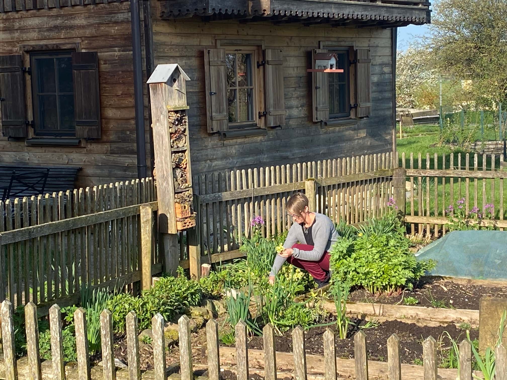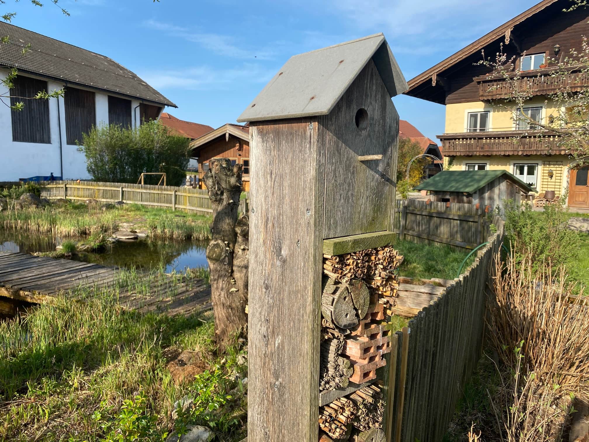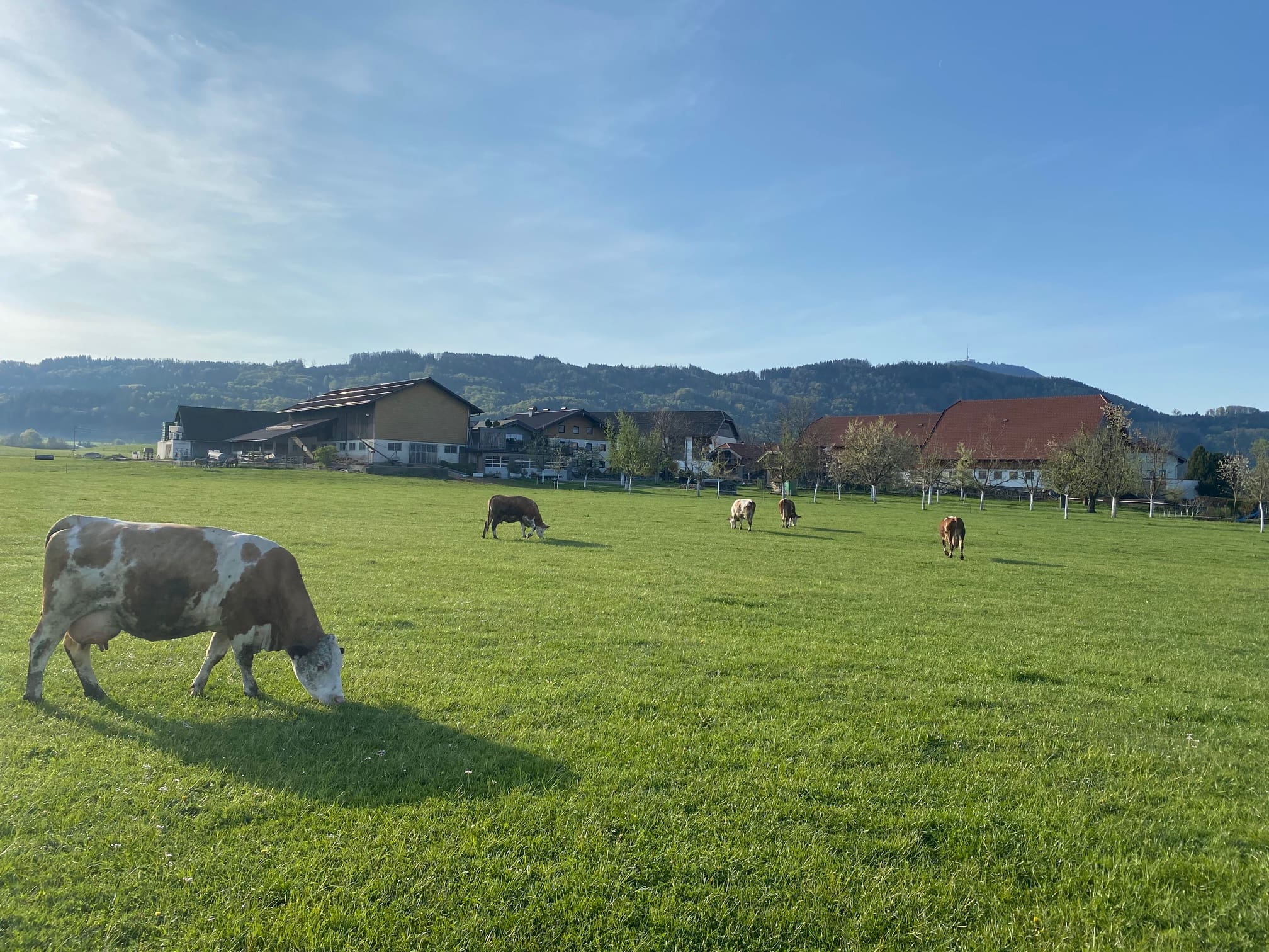 sondern auch einen speziellen, nämlich Salzburgs einzigen Landwirtschaftsbetrieb mit Erwerbs-Obstbau. In herrlicher Plateau-Lage mit Ausblick auf die umliegenden Stadtberge wird schon seit 25 Jahren biologische Landwirtschaft, begonnen durch die Eltern, gelebt. Von den Anfängen der Landwirtschaft hat sich auch noch die Milchwirtschaft erhalten. Fünfzehn Milchkühe finden auf den umliegenden Wiesen genug Rauhfutter, auf Kraftfutter wird verzichtet. 200 Legehennen fühlen sich im solarbetriebenen, mobilen Hühnerstall wohl. Sie dürfen im Erwerbsobsgarten unter 3000 Bio-Obstbäumen scharren, gemeinsam mit vielen anderen nützlichen Bewohnern, die in Bienenstöcken und Nisthilfen zu Hause sind oder zu Besuch kommen.