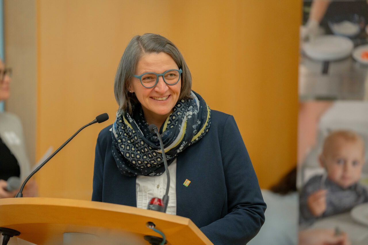 Barbara Riegler, Obfrau von BIO AUSTRIA, eröffnete die Veranstaltung und betonte dabei die Bedeutung der Bio-Landwirtschaft für eine nachhaltige Zukunft und erklärte, wie Großküchen dazu beitragen können, hochwertige Bio-Lebensmittel auf die Teller unserer Kinder zu bringen. „Damit wir für unsere Kinder heute und auch zukünftig eine gute Ernährung sicherstellen können, gilt es nachhaltig mit der Basis unserer Lebensmittel umgehen: unseren Böden. Als Biobäuerin ist es mir wichtig, dass wir Landwirtschaft so praktizieren, dass unsere Böden auch in 100 Jahren noch dazu in der Lage sind, wertvolle Lebensmittel hervorzubringen. Bio in der Gemeinschaftsverpflegung stärker zu verankern bedeutet, einen wichtigen Beitrag zu leisten und diese Art der Landwirtschaft zu fördern“, so Barbara Riegler.