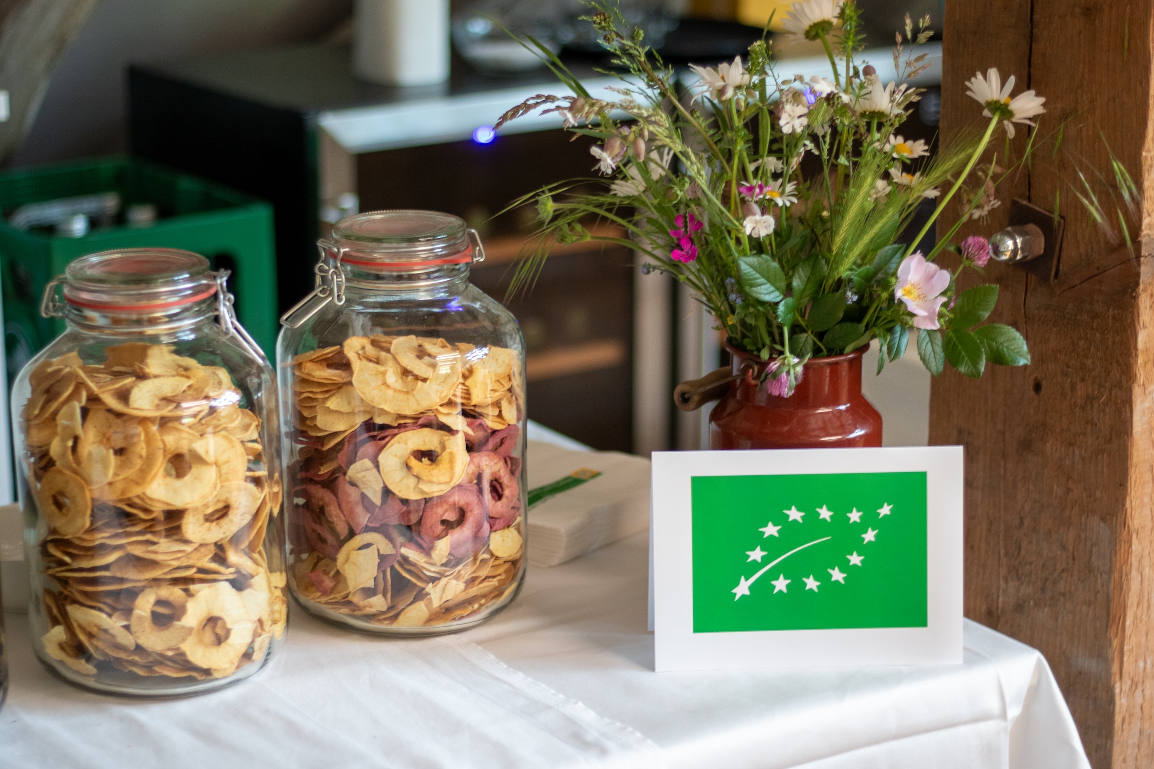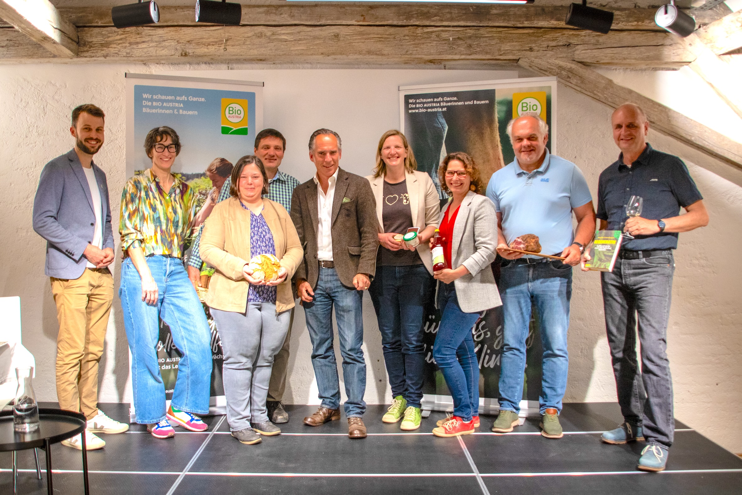 Im Anschluss sprach Geschäftsführer Philipp Reisinger über die Grundpfeiler der Bio-Landwirtschaft: Kreislaufwirtschaft, Bodenaufbau und Förderung der Biodiversität. Die anwesenden Produzent:innen wertvoller Bio-Lebensmittel hielten jeweils einen kurzen Impulsvortrag über die biologische Produktionsweise sowie über konkrete Schwerpunkte ihrer Arbeit, zum Beispiel artgerechte Tierhaltung, Förderung der Biodiversität und Verarbeitung von Urprodukten. Dabei betonten sie, dass ihnen Nachhaltigkeit und ein verantwortungsvoller Umgang mit den natürlichen Ressourcen sehr am Herzen liegen. Zu Verkosten gab es schließlich frisches Bio-Bauernbrot, Bio-Frischkäse, Bio-Spezialitäten vom Turopoljeschwein sowie feine Bio-Obstsäfte.