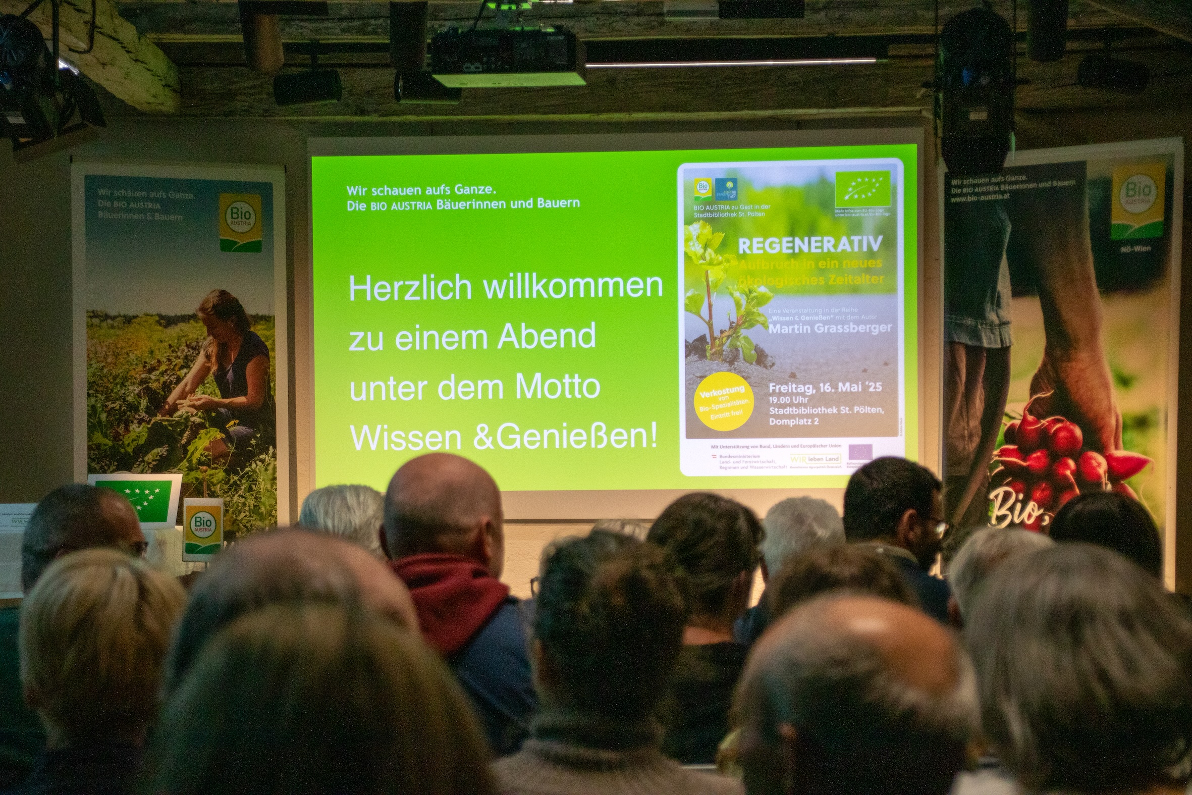 Mit „Wissen und Genießen“ am 16. Mai 2025 fand erstmals eine Veranstaltung von BIO AUSTRIA in Zusammenarbeit mit der Stadtbibliothek St. Pölten statt. Der stimmungsvolle Saal im Dachgeschoss der im Stadtzentrum gelegenen Bibliothek war mit knapp 70 Zuhörer:innen bis auf den letzten Platz gefüllt. Grund dafür war der Referent des Abends, Dr. Martin Grassberger, der einem faszinierten Publikum die Herausforderungen im Umgang mit komplexen Systemen spannend und verständlich zu vermitteln konnte.