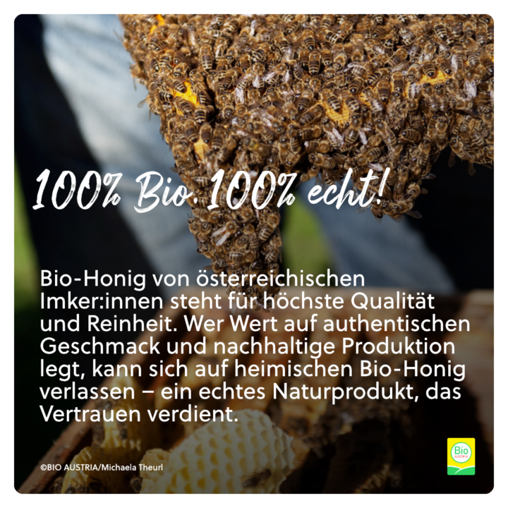 Mit unserem neuen Sujet möchten wir Sie dabei unterstützen, Ihre Kundschaft auf die unverfälschte Qualität von österreichischem Bio-Honig aufmerksam zu machen – perfekt für Social Media und als Aufsteller vor Ort.