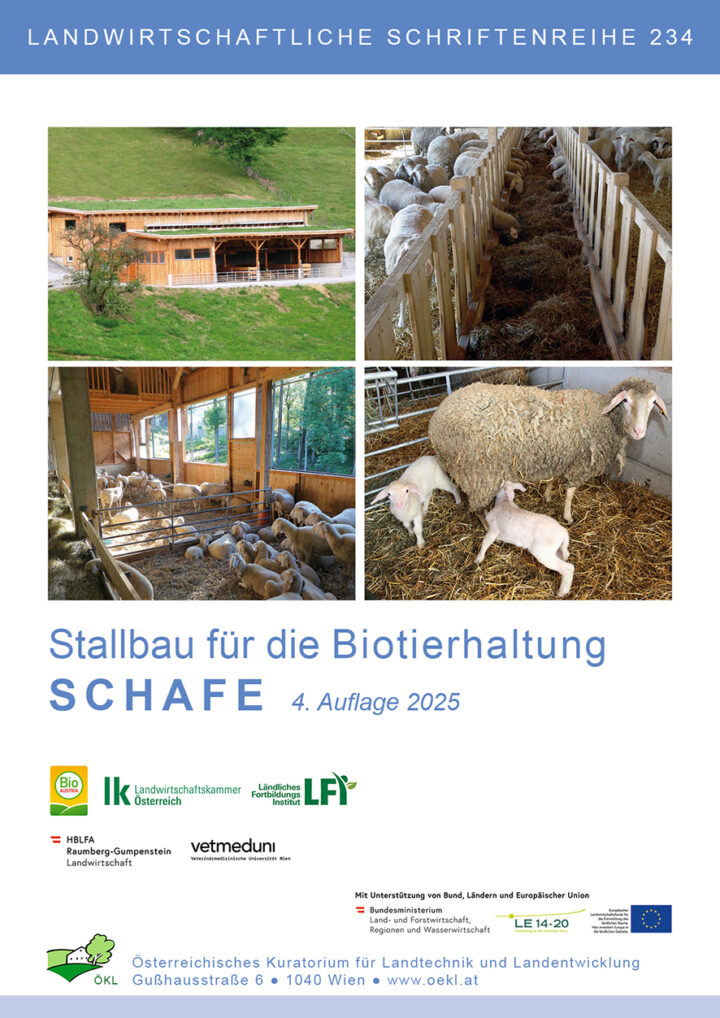 Die vorliegende Broschüre (4. Auflage – 2025) stellt eine umfassende Informationsgrundlage für Landwirtinnen und Landwirte dar, die mit stallbaulichen Maßnahmen in der Bio-Schafhaltung konfrontiert sind. Durch einen Abstimmungsprozess zwischen der Bauberatung der Landwirtschaftskammern, BIO AUSTRIA, der Forschung sowie mit dem BMSGPK wurde die vierte Auflage zum Stallbau für die Schafhaltung in der biologischen Landwirtschaft erarbeitet.